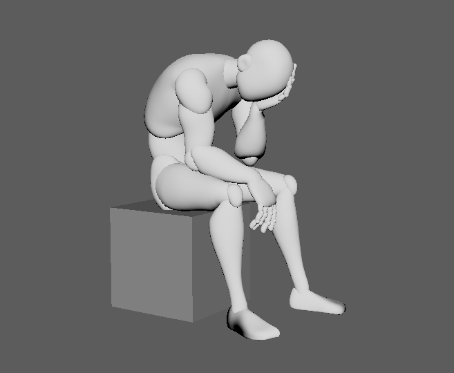 For exercising the golden pose, we had a sad or regretful golden pose assignment. I started off with a reference pose but then I improvised to experiment with the rig. Here is the reference I used and the pose I did: